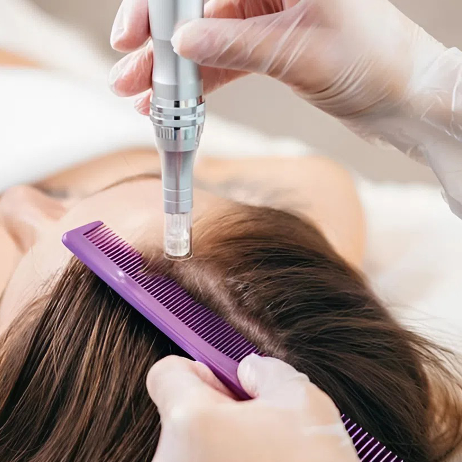 và thúc đẩy sản sinh collagen tự nhiên, phương pháp này giúp giảm rụng tóc, tăng độ dày