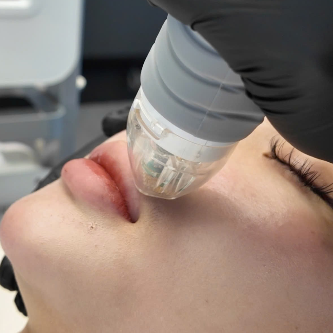 Ứng dụng công nghệ vi điểm kết hợp sóng RF cao tần tác động chính xác đến tầng trung bì vùng môi, thúc đẩy tăng sinh collagen tự nhiên, giúp làm mềm cấu trúc môi, cải thiện độ căng mịn và phục hồi viền môi sắc nét.